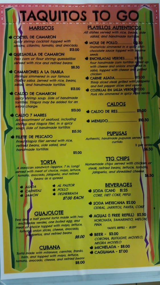 Taquitos To Go, located in High Point, NC, offers a variety of Mexican dishes for takeout and delivery while also providing a comfortable dining experience with options for outdoor seating. The menu includes flavorful options like Cotel De Camaron, Quesadilla De Camaron, and Camarones a La Diabla, all crafted with authentic Mexican flavors. Customers have praised the delicious food and friendly service, with some even calling it one of the top Mexican restaurants they have ever tried. The simple interior may not stand out, but the food speaks for itself in its authenticity and quality. With a focus on fresh ingredients and traditional recipes, Taquitos To Go is a must-visit for anyone craving genuine Mexican cuisine in the area.
